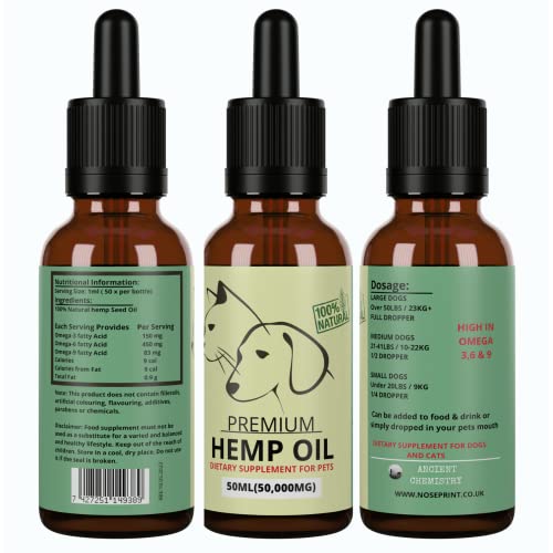 2X 50ML 100% Natural Hemp Oil Drops For Pets, Dog Calming Hemp Oil, Dog Anxiety Relief, Pain Relief for Dogs, Healthy…
