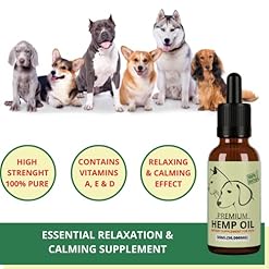 Free of THC and CBD and DOSAGE: Large pets – over 50lbs/23kg – full dropper Medium pets – 21 – 41lbs/ 10-22kg – 1/2 dropper Small pets – under 20lbs/9kg – 1/4 dropper Pets remedy hemp oil harnesses natures source of anti-inflammatory omega 3 and omega 6. Perfectly balanced high strength omega 3, 6 & 9 along with Vitamins A, E & D for maximum absorption and anti-inflammatory effects will help soothe Joint & Muscle Pain and will improve Arthritis pain relief for your pets. As pets get older their joint pain and swelling is common cause for concern, with Ancient chemistry hemp oil daily support it will improve joint function and mobility so pets can stay active for longer. Produced from the Sativa Plant which is Known for its Calming Benefits. All natural way for anxiety relief for noise anxious pets, aggressive pets, and those suffering from separation anxiety when left alone. Suitable for all sizes, all breeds of dogs and cats and other pets. Comes in easy to administer dropper bottle. Can be added to food & drink or simply dropped in your pets mouth. Omega oil with fatty acids maintain healthy skin which moisturises the skin and helps reduce itchiness and scratching. Omega oils help reduce skin disease and promotes shinier and healthier coat. Ancient chemistry hemp oil contains powerful antioxidants like iron – for growth and development, calcium – to build and maintain strong bones, zinc – for immune system and metabolism function and magnesium – to support muscle and nerve function and energy production. Ancient Chemistry hemp oil is 100% natural, free from additives, preservatives, or artificial ingredients. Non GMO, no pesticides and have no added flavourings and colourants. – Ancient chemistry hemp oil is lab tested and has ISO 9001 quality assurance certification. Stress relief, back pain relief, dog calming products, muscle pain relief, cat coat, hemp oil dogs, dog supplements, hemp seed oil, dog pain relief anti inflammatory, cat calming, joint pain relief.