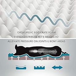 EGG CRATE FOAM: Bedsure dog bed crate evenly distributes pet’s weight to alleviate pressure on joints & bony areas – Resemble the bottom of an egg carton, this bumpy surface is softer than a solid block of foam and helps air circulate to keep puppies cool in the hotter months – Convoluted foam also offers shock absorption that is beneficial for older dogs.