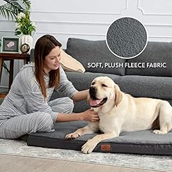 Bedsure Large Dog Bed Washable – Orthopedic Dog Bed and Mattress Mat for Dog Crate with Removable Plush Sherpa Cover…