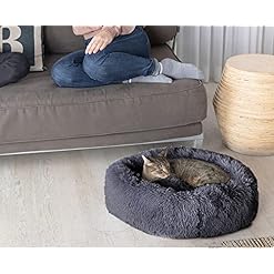 Enjamoy Plush Donut Dog Bed, Calming Round Dog Cat Bed Soft and Fluffy Cuddler Pet Cushion Self-Warming Puppy Beds…