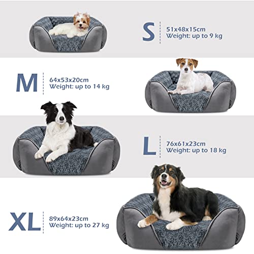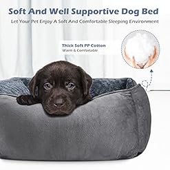 ????Thick Padding: The inside of the grey dog bed is filled with fiber cotton with a density of 480gsm, bottom thickness greater than 14CM and edge thickness greater than 12CM, it is fixed by 2 stitches, so you donot worry about the cotton shifting or collapsing, it will provide support for the pet’s head, neck, waist at all times, and ensure pet’s bones grow healthy. Low front edge allows easy access for dogs, provides support for hands for a more comfortable sleeping position.
