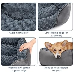 ????Thick Padding: The inside of the grey dog bed is filled with fiber cotton with a density of 480gsm, bottom thickness greater than 14CM and edge thickness greater than 12CM, it is fixed by 2 stitches, so you donot worry about the cotton shifting or collapsing, it’s going to provide make stronger for the pet’s head, neck, waist all the time, and ensure pet’s bones grow healthy. Low front edge allows easy access for dogs, provides make stronger for hands for a more comfortable sleeping position.