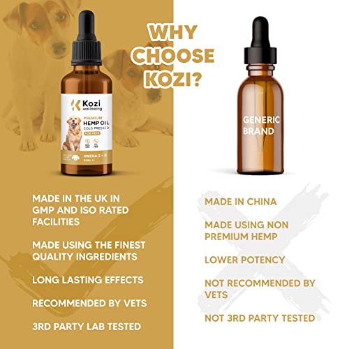 Kozi Wellbeing Hemp Oil for Dogs UK – Large 50ml bottle – Rich in Omega 3, 6, 9 – Made in UK – Wellbeing Products for…