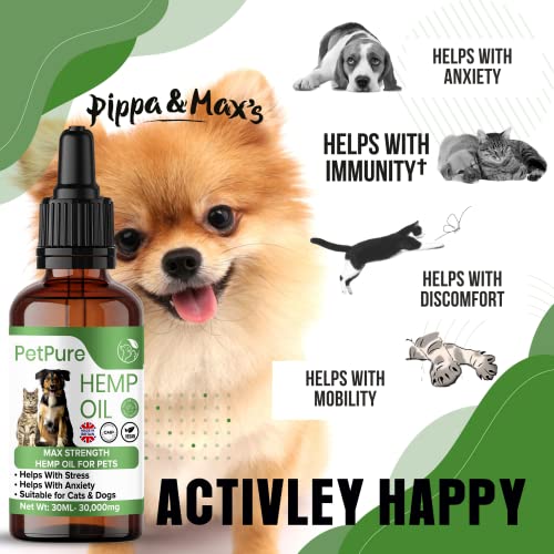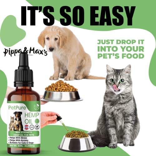 Pippa & Max Hemp Oil for Dogs and Cats & Pets – 30,000MG 30ml – Hemp Extract Made in the UK – Hip & Joint Supplement…