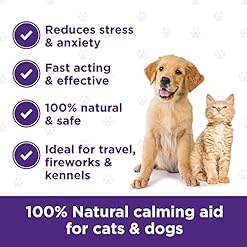 DOG PET CALMING SUPPLEMENT – Our pet calming tablets will quickly lend a hand calm your pet, reducing ANXIETY in times of stress. This is a sedative, anti-stress agent for dogs and cats. It’s used to correct and stabilize pet behaviour even as travelling, all over festivities, before visiting a vet and in other extreme situations for pets.