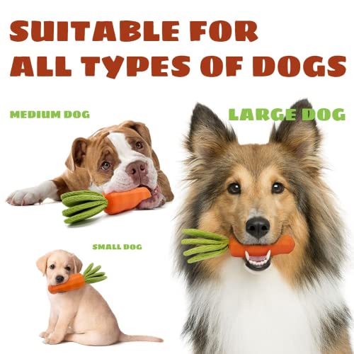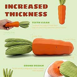 ????【UNIQUE CARROT DESIGN DOG GIFT】- This dog squeaky chew toy helps to meet your dog’s instinctive needs for effective anxiety relief, destructive chewing, weight management training and reducing pet boredom, the squeaky design of this rubber dog toy will attract your dog’s attention and make him happier!